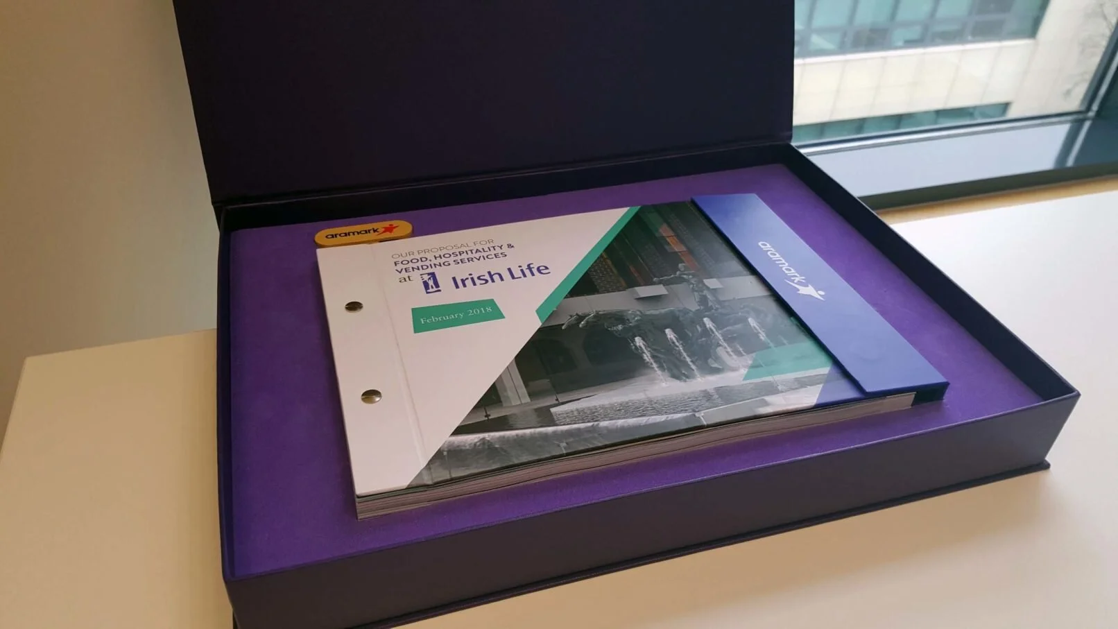 The tender was enclosed in a box with foam cutout for branded USB key and document. The bid was closed with a magnetic clasp, with a screw bind.